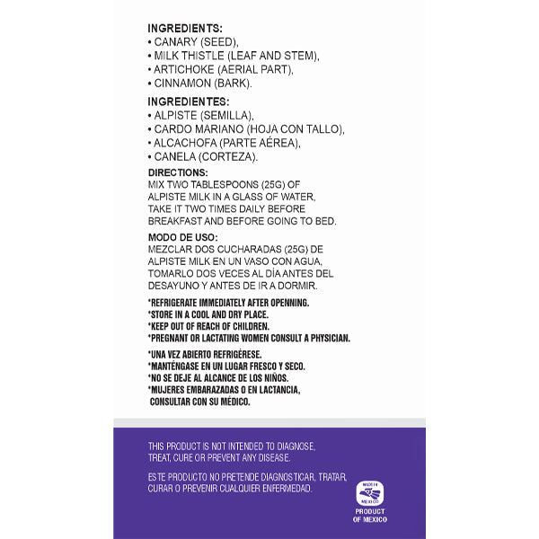 Hay días en los que tu cuerpo anhela un reinicio, una forma de liberar su carga y renovarse desde dentro. Para esos momentos, creamos Alpiste Milk. Más que un batido, es tu ritual diario de bienestar hepático. Su fórmula combina el poder de Alpiste rico en proteínas con cardo mariano y alcachofa, dos de los botánicos más reconocidos por su uso tradicional en el apoyo a la función hepática y los procesos de limpieza del cuerpo. * Con un toque de canela, cada sorbo es un acto de autocuidado que te ayuda a sentirte revitalizado y equilibrado. * Nutre el motor de tu cuerpo.