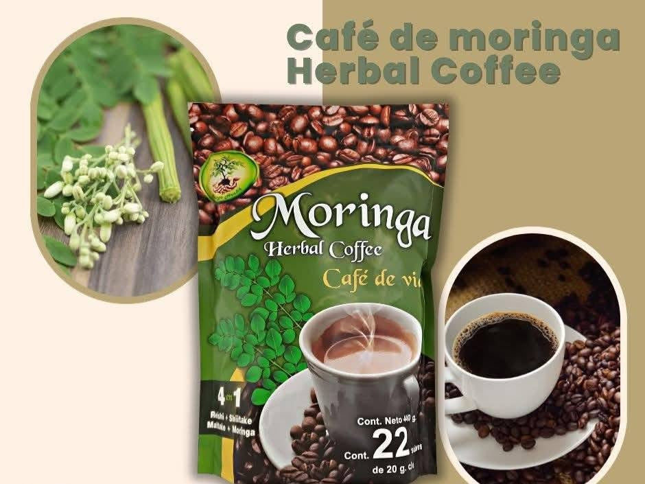 - Mejora del perfil nutricional: la moringa aporta vitaminas y minerales (vitamina A, vitamina C, calcio, hierro) que el café por sí solo no provee.