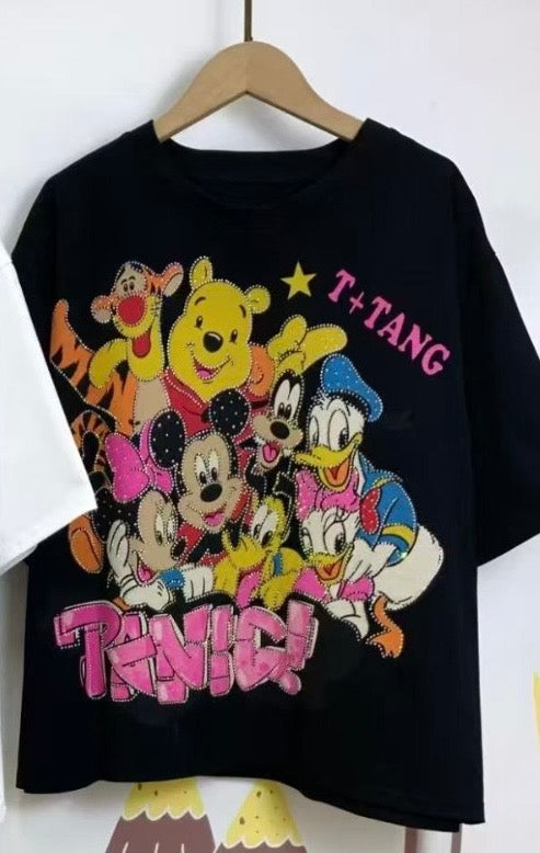 Shirt-Playera con tus personajes favoritos con pedrería. Playera con stretch.